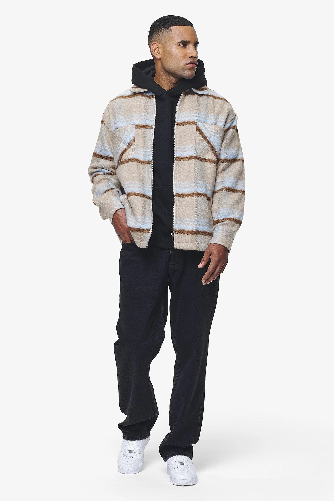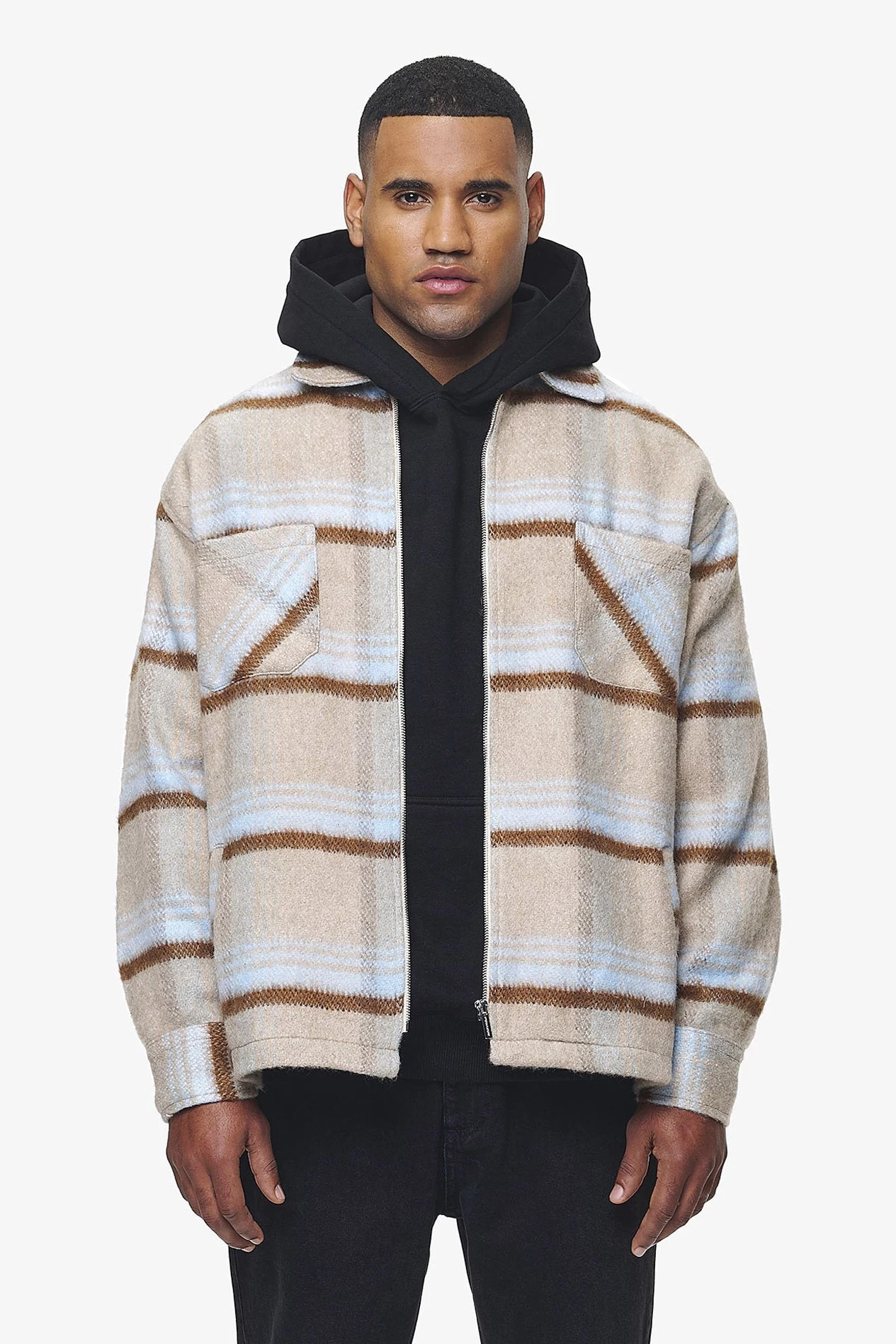 - skyblue heavy flannel zip shirt