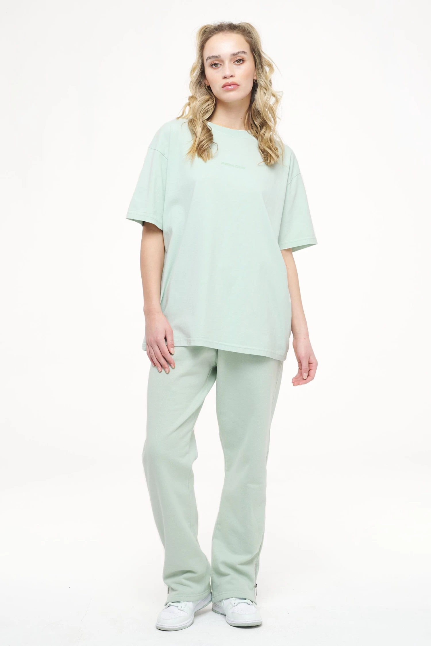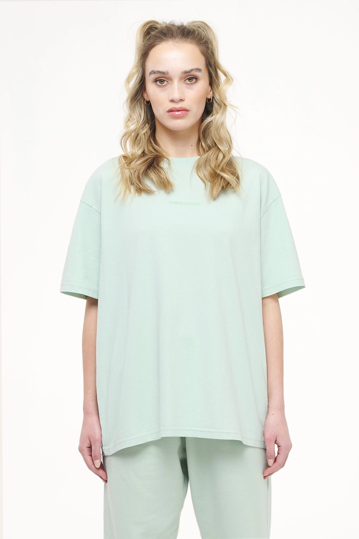 Beverly Logo Oversized Tee Vintage Washed Milky Green Gum