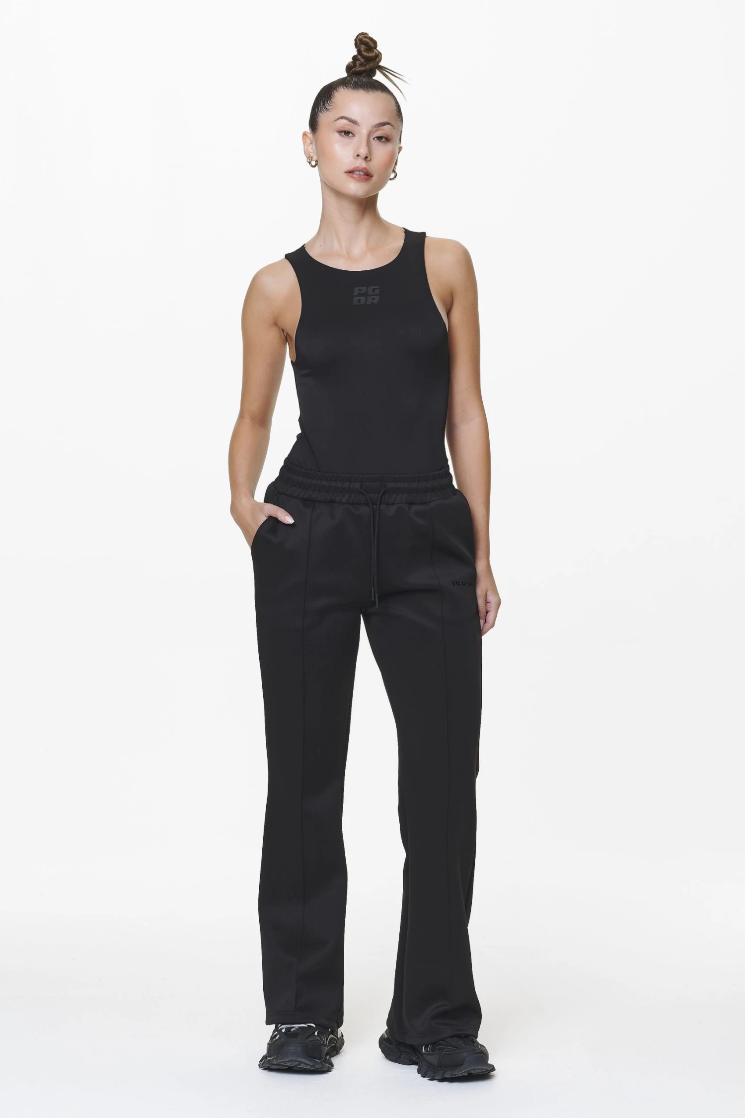 - black flared track pants