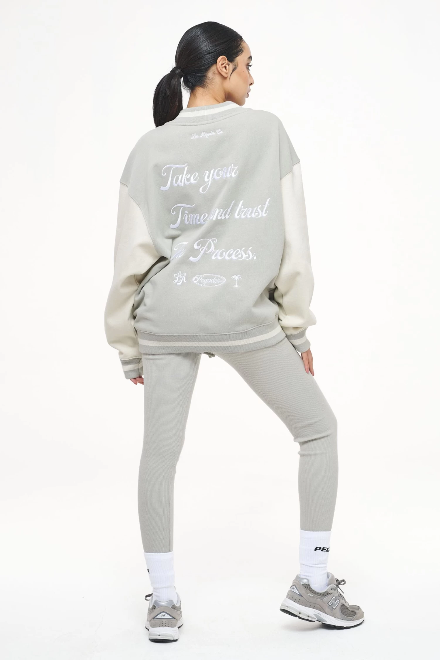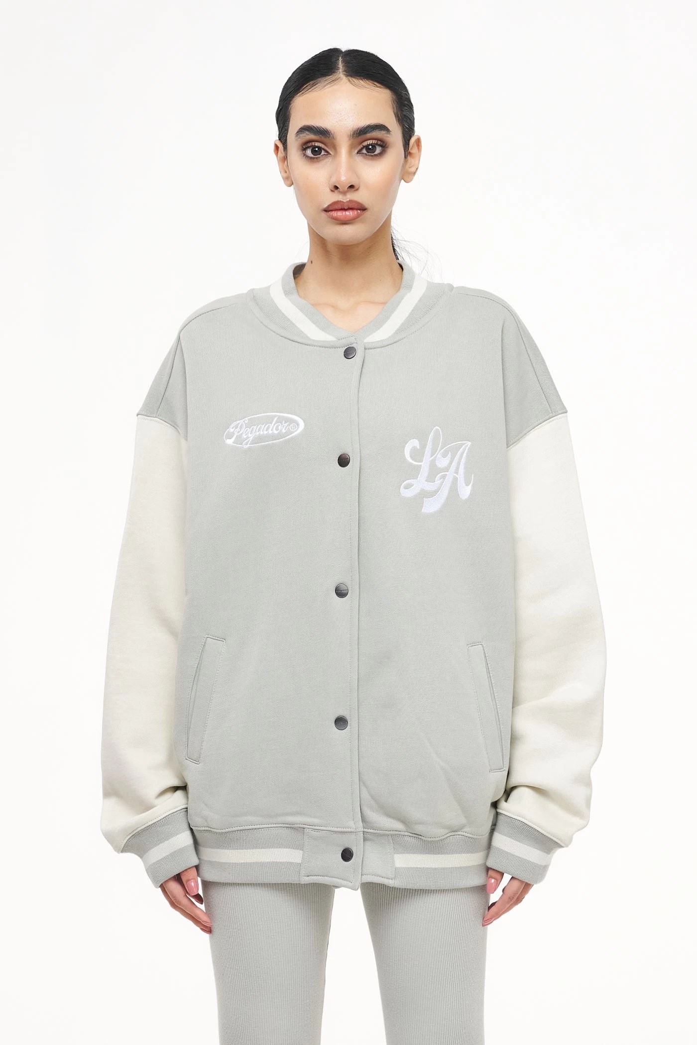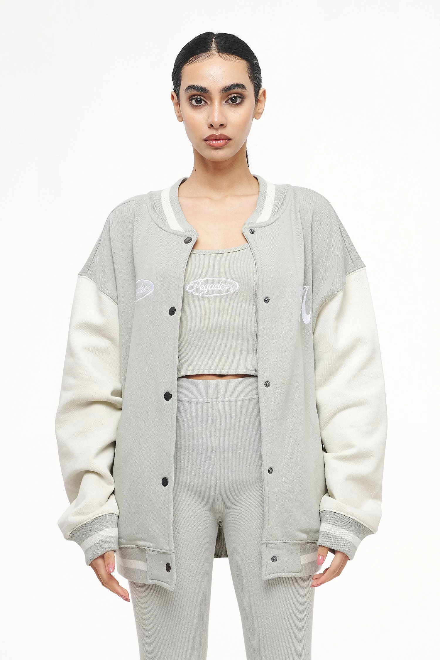 - vintage washed quiet gray varsity jacket