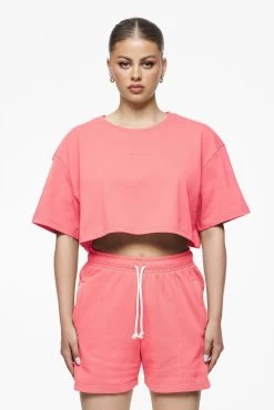 Layla Oversized Cropped Tee Vintage Washed Strawberry Gum
