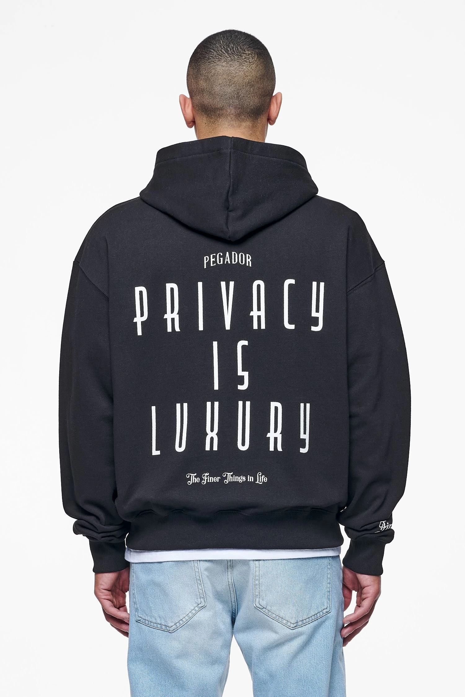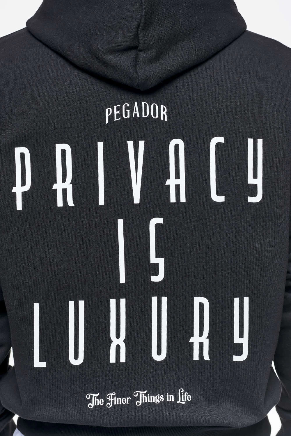 - white ‘privacy is luxury’ print to the back