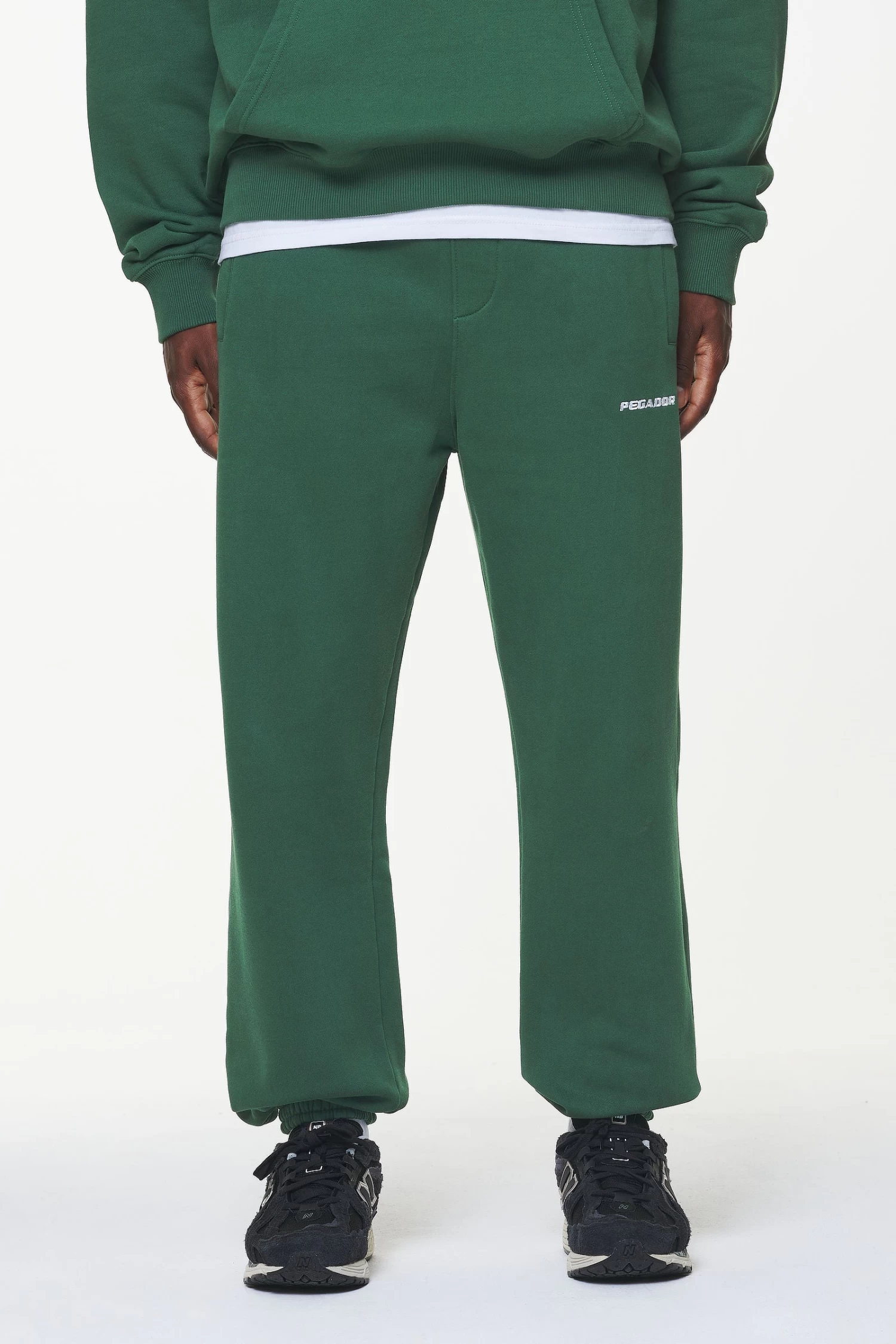 - white logo embroidery to the left leg