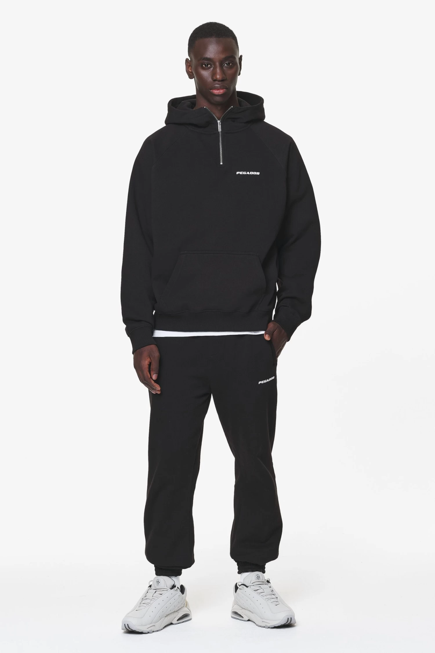 - black halfzip hoodie