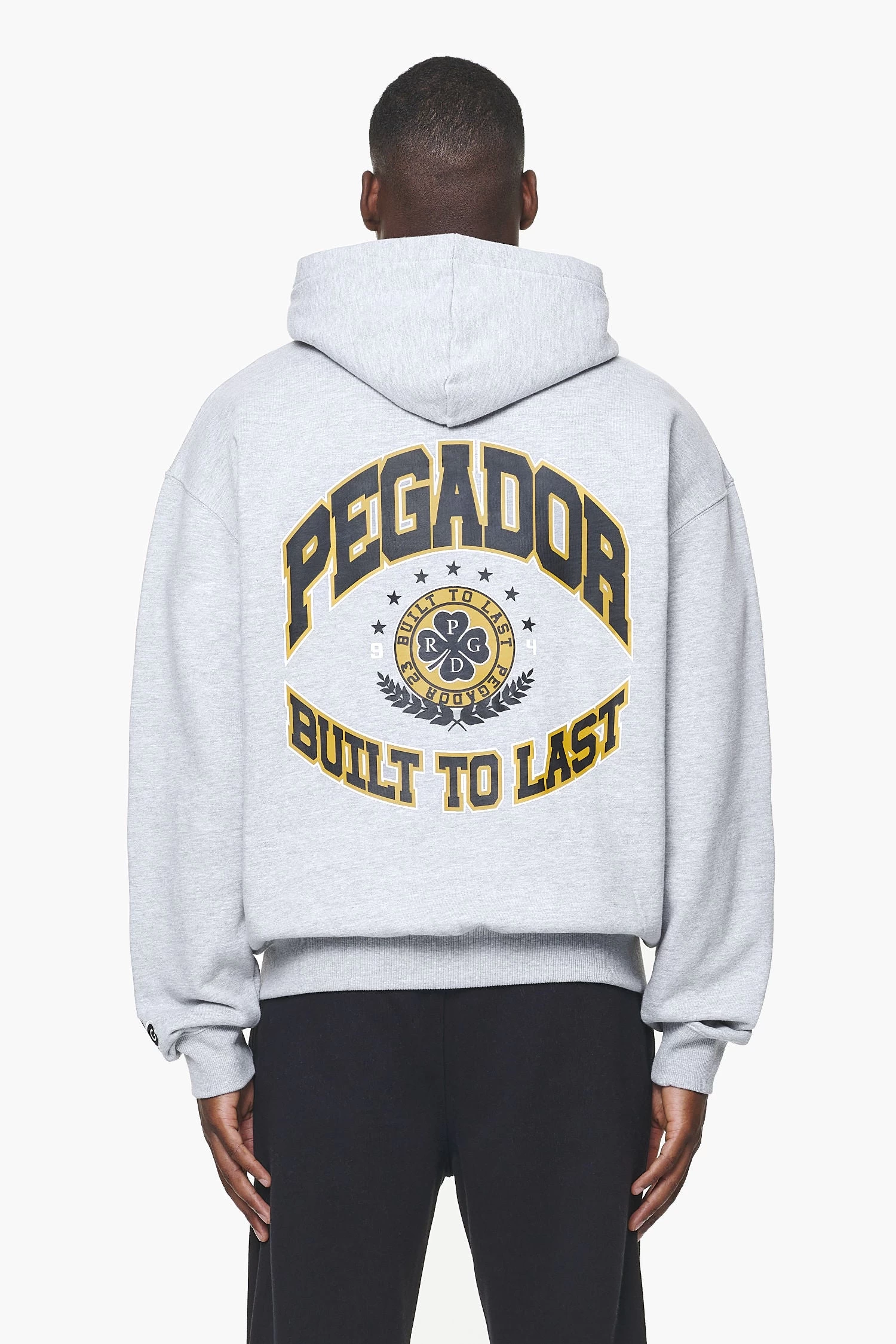 - mustard / black ‘built to last’ print to the back